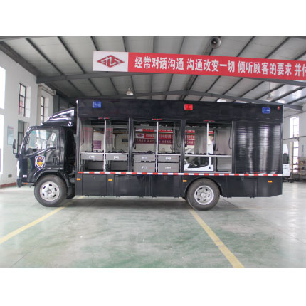 安旭牌AX5100XZB警用裝備車是在慶齡QL11009Pary二類底盤基礎(chǔ)上,根據(jù)特警快速出警的要求進(jìn)行裝備布置改裝而成,可隨時(shí)與運(yùn)送特警隊(duì)員的車輛同時(shí)出警,讓出警隊(duì)員在出警目的地快速取用裝備,縮短了出警準(zhǔn)備時(shí)間,是科技強(qiáng)警必備的基礎(chǔ)裝備。特點(diǎn):箱體可選裝卷簾門、上掀門、上下掀門等多種形式 高強(qiáng)度鋁型材裝備架,重量輕,強(qiáng)度高,可擴(kuò)展 側(cè)面登高平臺(tái)、選裝液壓尾板