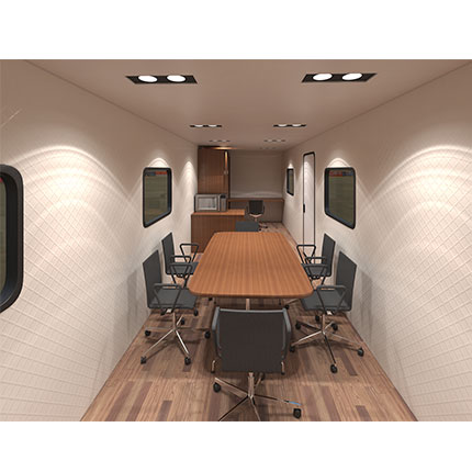 安旭牌野外移動(dòng)辦公拖掛房車,專為野地辦公研發(fā)設(shè)計(jì)制造的專用拖掛房車,房車配備書桌、書柜、照明系統(tǒng)、新風(fēng)空調(diào)系統(tǒng)、會(huì)議桌椅等辦公設(shè)備!